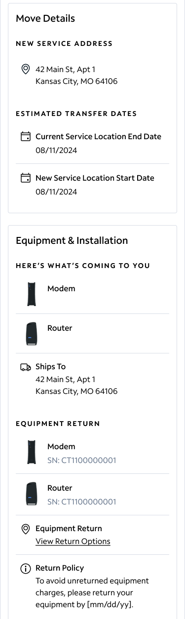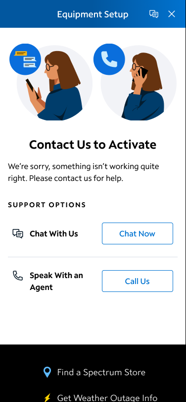 Changing the language from equipment list to activation dashboard seems insignificant, but user testing found that over 70% of users were more prepared for a multi-step flow when dashboard was used in the header.