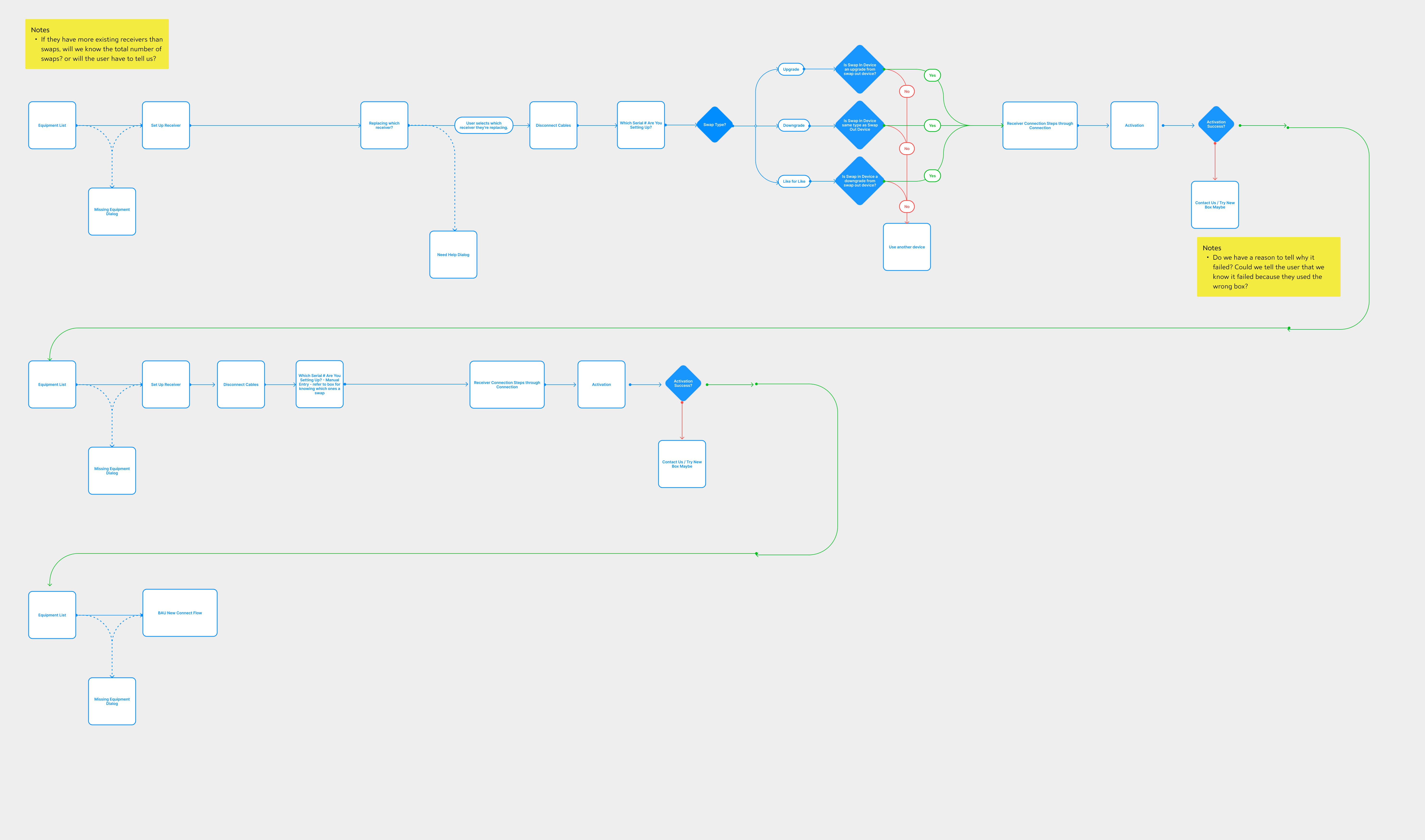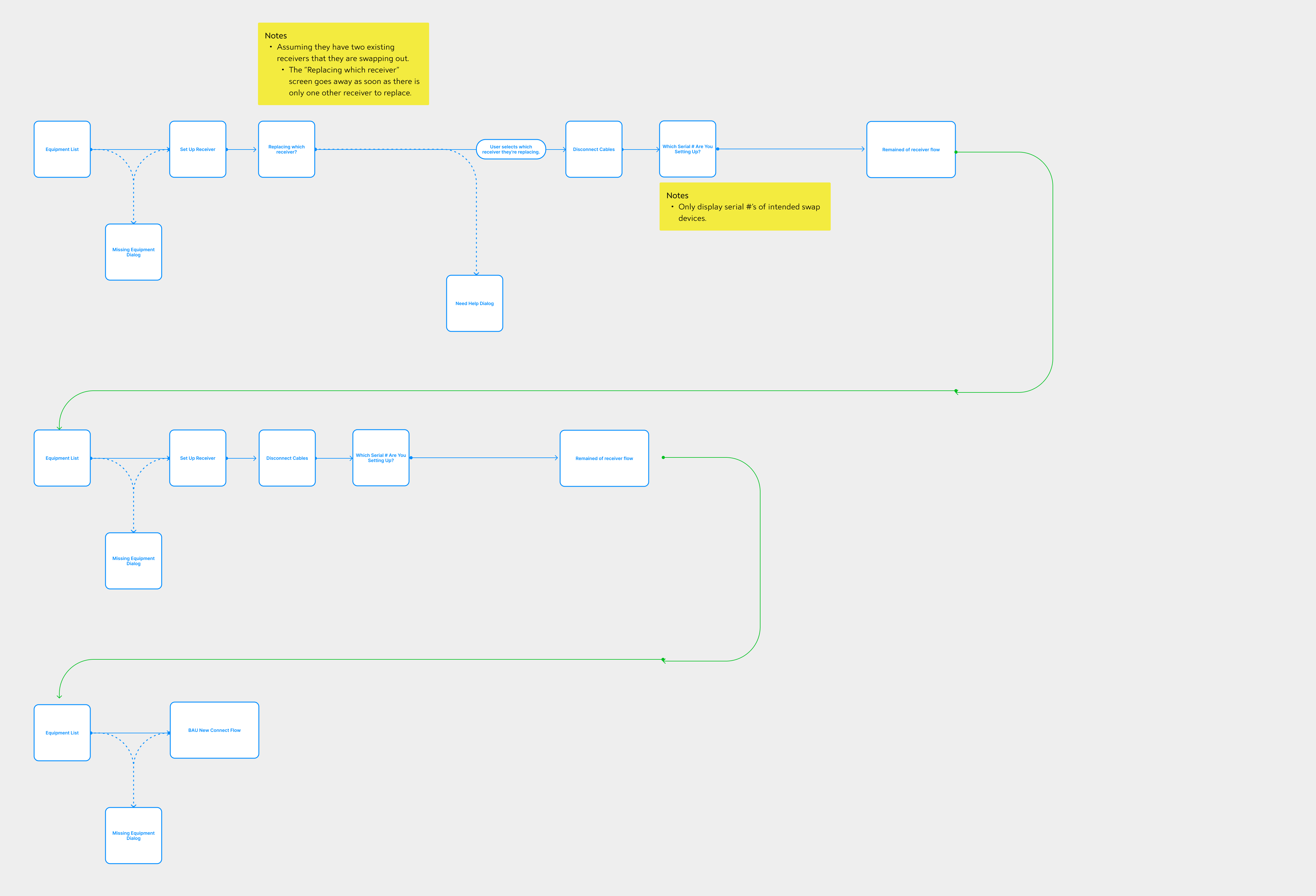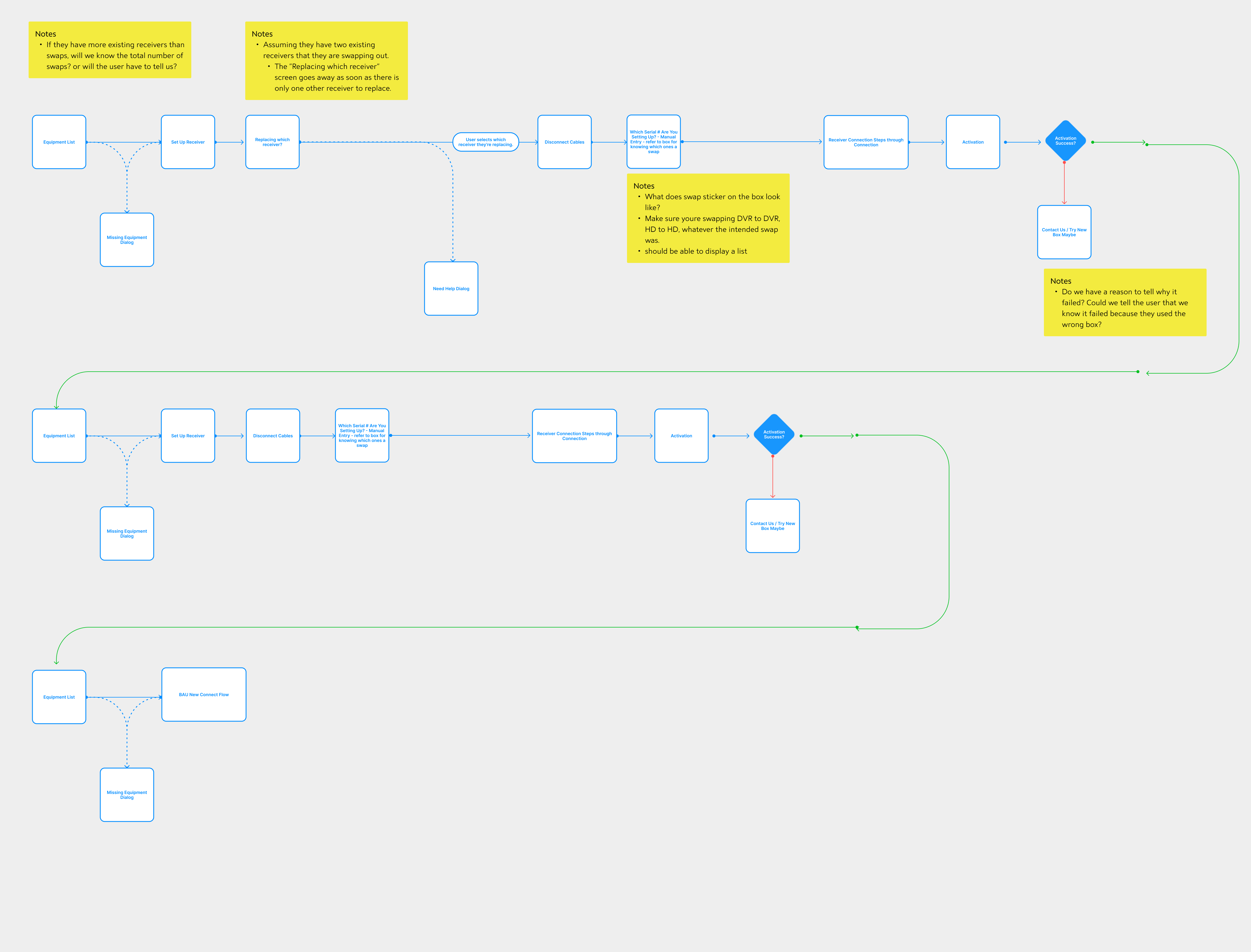 First, the flow starts with the equipment list (later the Activation Dashboard). This is consistent in every Self-Install flow to orient the user.
